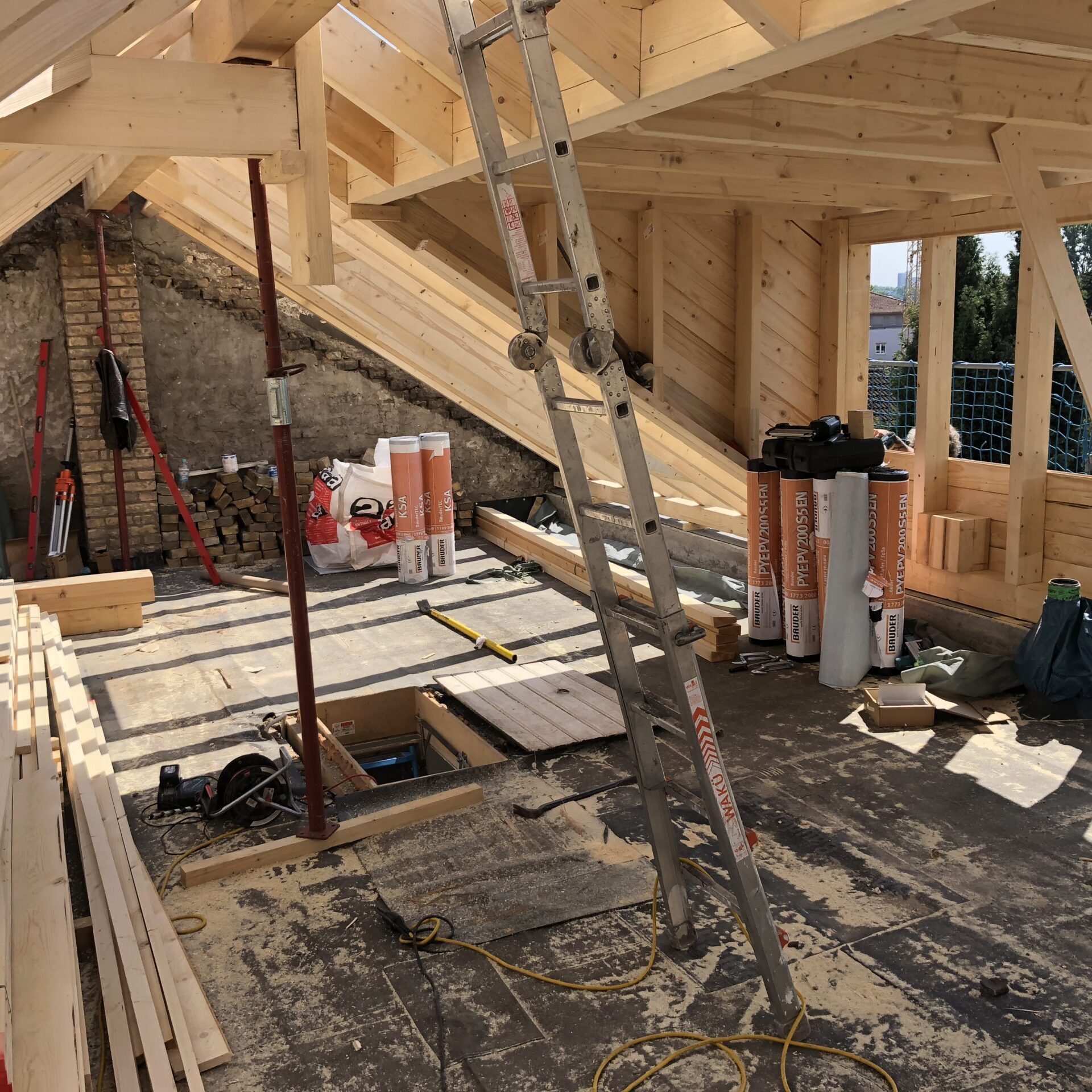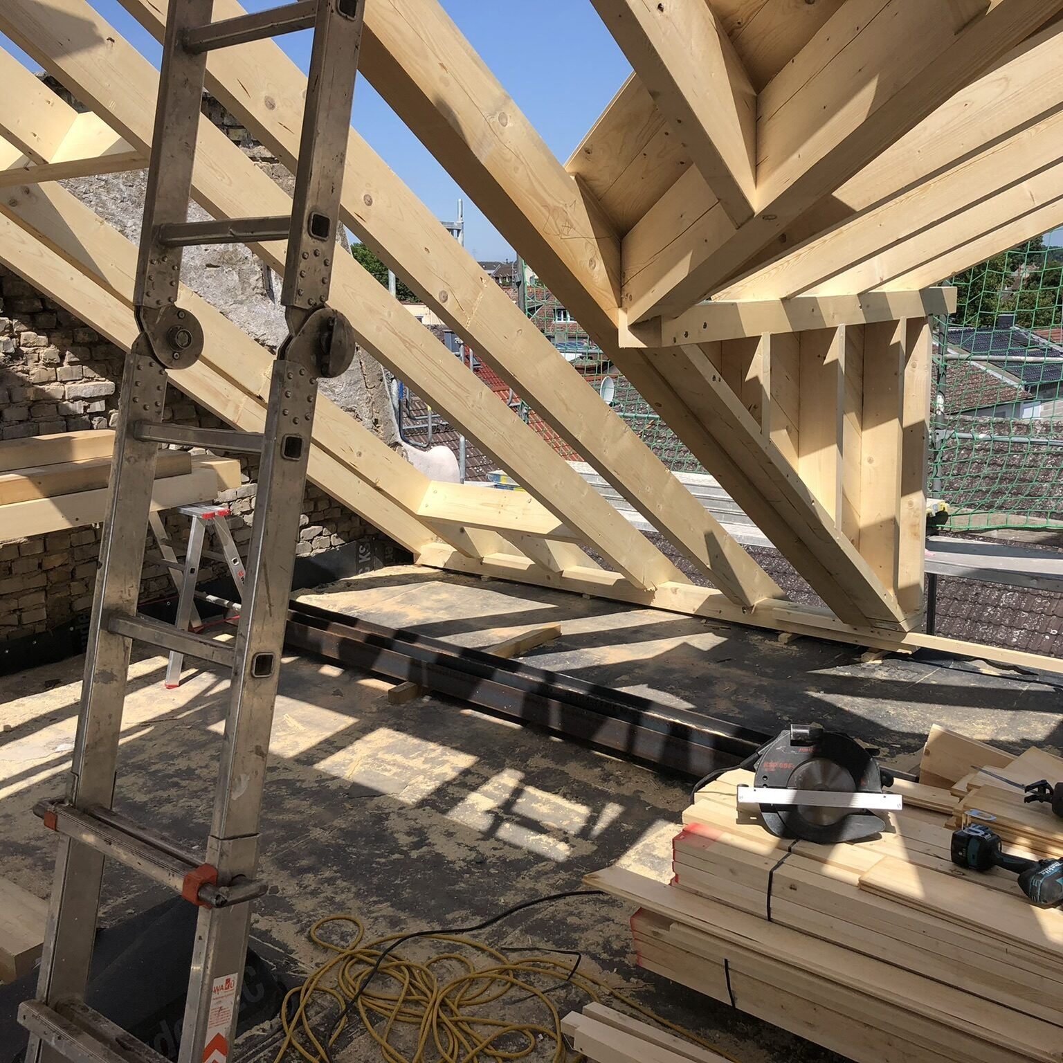 Für Bauherren, die selbst aktiv werden möchten, bieten wir eine besondere Möglichkeit: Wir übernehmen das Aufmaß und die passgenaue Anfertigung der Bauteile, während die Montage des Dachstuhls in Eigenleistung erfolgen kann. So profitieren Sie von unserer präzisen Vorfertigung und sparen gleichzeitig Kosten bei der Umsetzung. Selbstverständlich stehen wir Ihnen dabei beratend zur Seite und sorgen für eine maßgeschneiderte Lieferung, die einen einfachen und sicheren Aufbau ermöglicht.